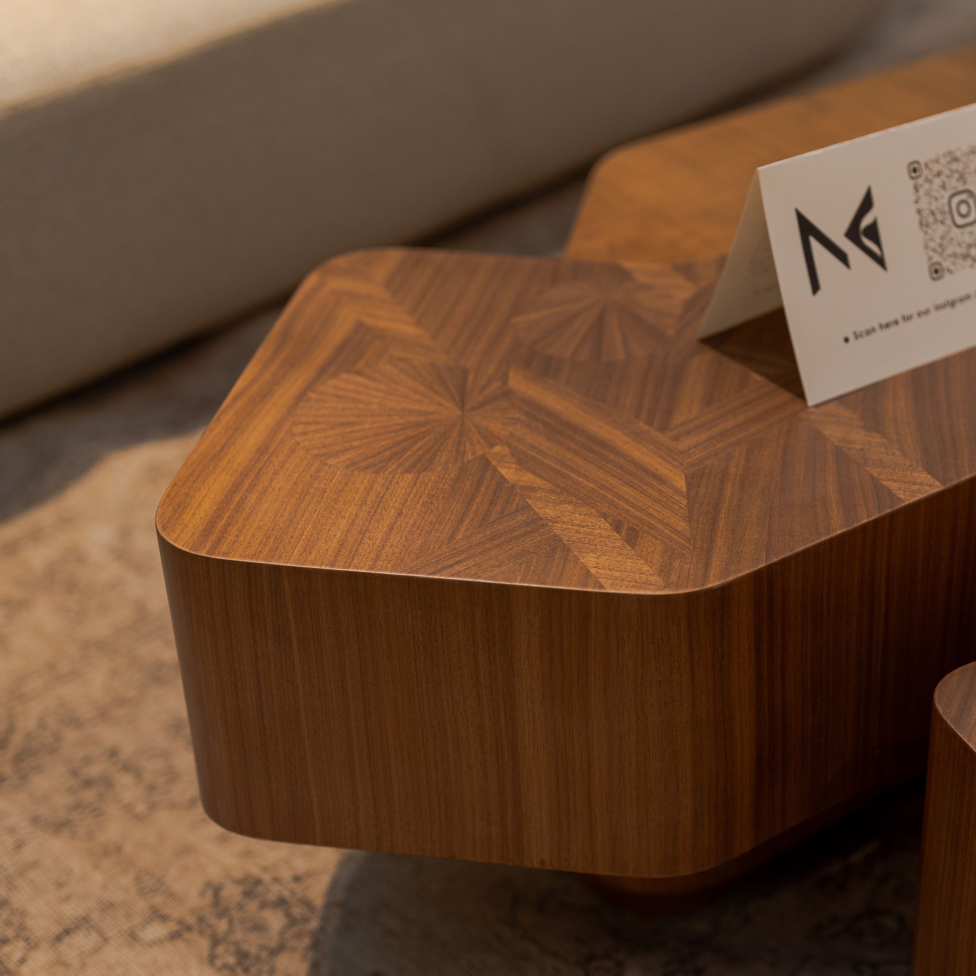 The Nables Coffee Table is inspired by the historic city of Palestine and crafted entirely from natural wood. This table combines cultural heritage with modern elegance, offering a unique and timeless piece that reflects the rich history and craftsmanship of the region.