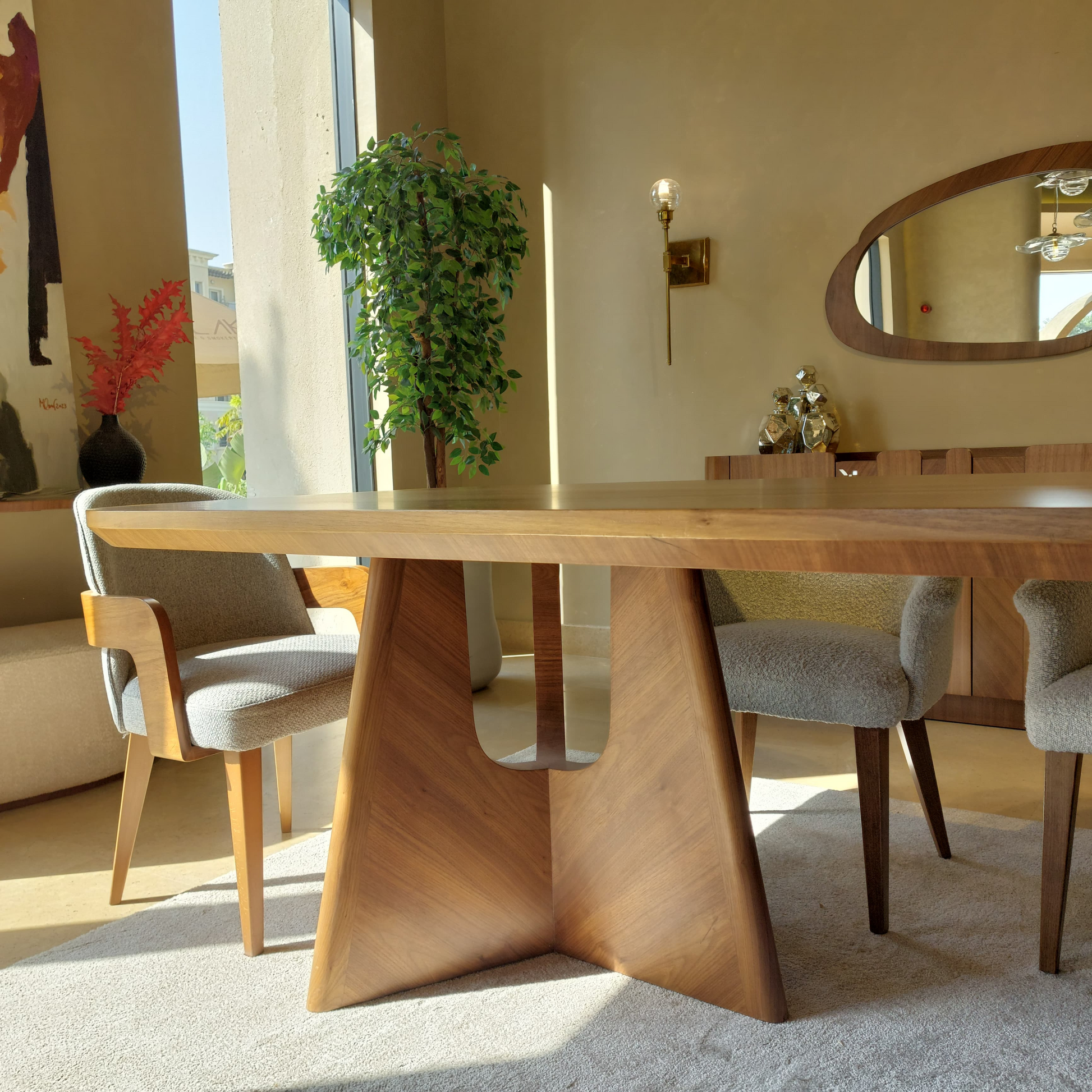 "Dining table inspired by the olive tree of Palestine, crafted to bring a touch of timeless elegance and cultural heritage to your dining space."